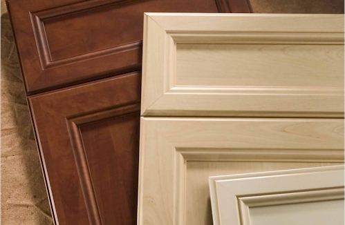 moldings, raised panel drawer faces, glass or mirror framed doors, granite